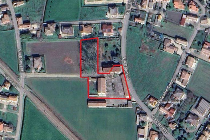 CASTAGNARO (VR) VIA CAPITELLO 622 - Piena proprietà di corte rurale composta da abitazione (515 mq.), depositi (310 mq.), box auto (111 mq.), immobile adibito ad attività ristorativa/agriturismo (472 mq.), piazzale pavimentato adibito ad area di transito e manovra (1.200 mq.) e terreni adiacenti (piccolo terreno pertinenziale di 316 mq. e parco alberato di 1.565 mq.).
