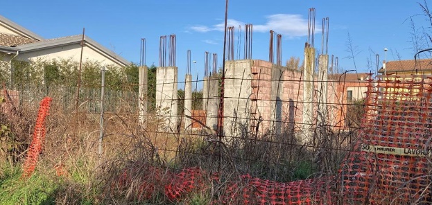 OPPEANO (VR) VIA GIANFRANCO MIGLIO - Piena proprietà di terreni edificabili contigui della superficie catastale complessiva pari a 827 mq. sui quali sono stati realizzati in passato le fondazioni e le opere murarie fino al solaio, per poi fermarsi pressappoco con il 2011. Oggi quello che rimane è uno scheletro edilizio soffocato dalle erbe infestanti, impenetrabile e di fatto pericoloso sia per i