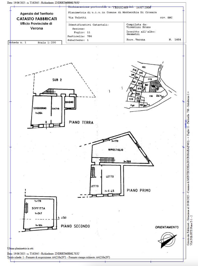 MONTECCHIA DI CROSARA (VR) VIA TOLOTTI 3 - Piena proprietà di compendio immobiliare sviluppato su tre livelli fuori terra, in stato di degrado statico e funzionale, con pertinenziali corte, autorimessa e terreno.