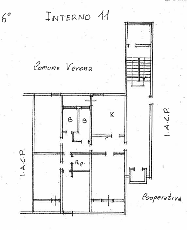 VERONA - VIA ANGELO EMO 70 interno 11 - Appartamento al sesto piano composto di cucina, soggiorno, tre camere da letto, disimpegno, un ripostiglio, due bagni e tre balconi. Sono presenti al settimo piano una soffitta e un garage al piano terra. Riscaldamento centralizzato/teleriscaldamento, con ascensore, regime area in diritto di superficie, anno di costruzione 1975.