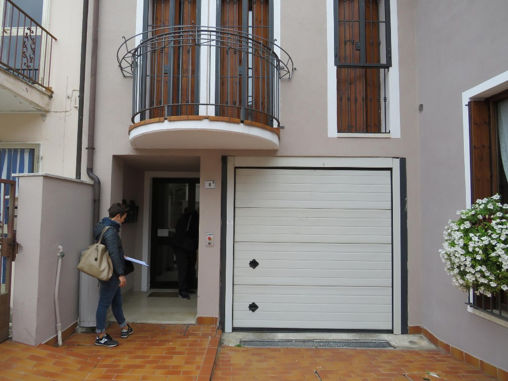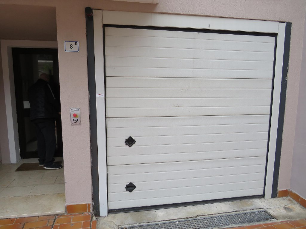 L’accesso ai posti auto interrati avviene dal portone a bascula automatizzata che conduce su un monta auto che collega il piano interrato. La pavimentazione è in battuto di cemento.