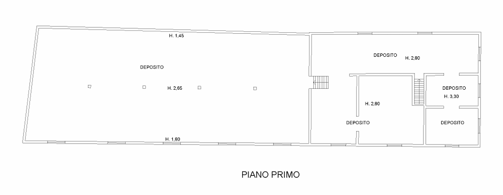 • Piano primo: ampio vano ad altezza ridotta (catastalmente individuato deposito ma più simile ad un sottotetto), ulteriori n° 5 vani a destinazione deposito.