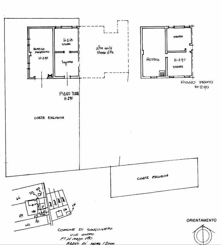 La porzione adibita ad abitazione, si sviluppava anche essa su due piani, dove al piano terra c’era una stanza ed al primo piano altri due vani. Il terreno ha una superficie di 2.717 mq.
