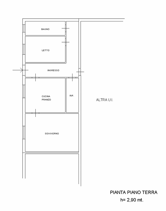 • Appartamento piano terra - mq 105 - sub 5 (senza numero civico) , suddiviso in ingresso, pranzo cucina, soggiorno, ripostiglio, camera da letto e bagno.