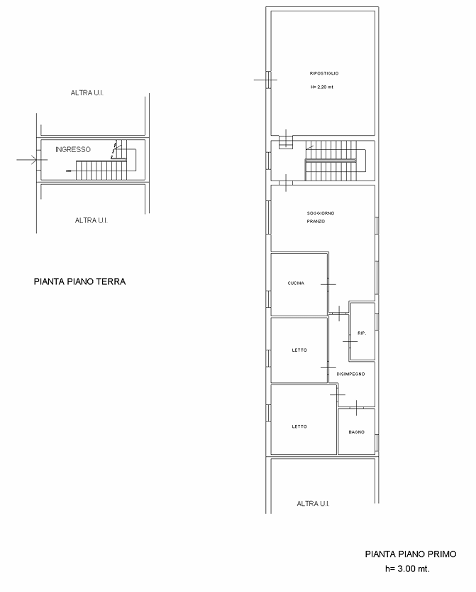 • Appartamento piano primo- mq 182 - m.n. 215 sub 6 (civico 13), suddiviso in vano scala di accesso, soggiorno-pranzo, cucina, disimpegno, ripostiglio, n. 2 camere da letto e bagno. Vano ripostiglio.