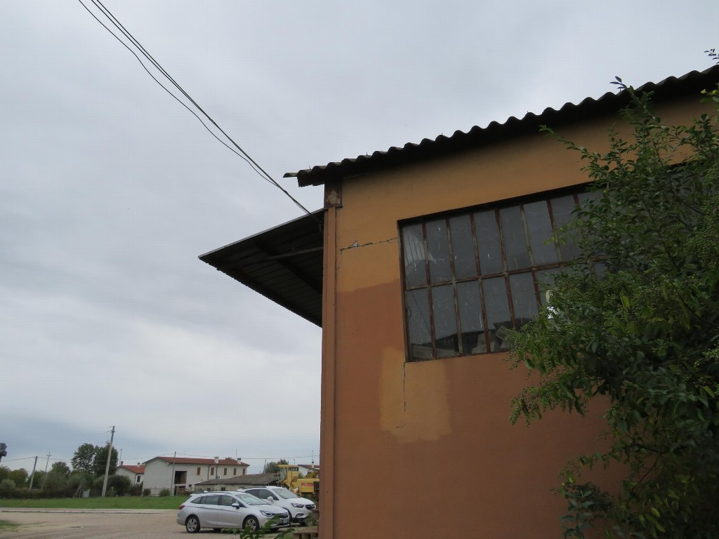 BOSCHI SANT'ANNA (VR) VIA STRADONE 10 - Piena proprietà di capannone e terreno. L’immobile in oggetto ha forma rettangolare, avente destinazione a laboratorio, un tempo utilizzato come falegnameria e magazzino. L’accesso avviene direttamente dalla strada pubblica Via Stradone n.° 10, fa parte di un più ampio complesso, verso i quali non vi è una separazione fisica ed il cui accesso avviene dal medesimo cancello carraio. Internamente è formato da un unico grande spazio dove è stato ricavato un piccolo ufficio nel lato nord. Il fabbricato presenta struttura in pilastri di c.a., pareti in muratura, struttura del tetto in capriate metalliche, copertura a cupola, con onduline curve in eternit.