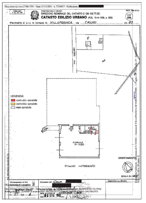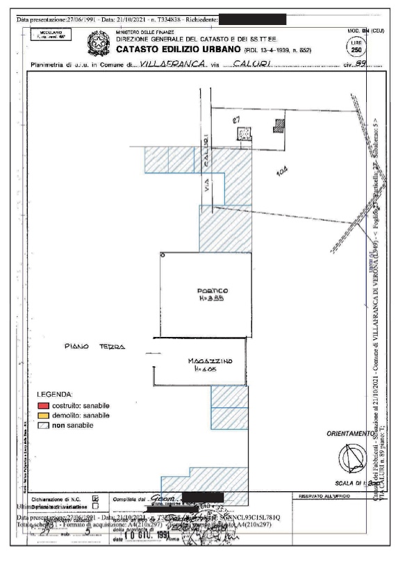 VILLAFRANCA - LOCALITA' CALURI - VR - In Comune di Villafranca di Verona (VR) , Località Caluri, Via Caluri n. 89, piena proprietà di fabbricato Residenziale unifamiliare su un piano fuori terra, oltre a pertinenziale autorimessa e vani accessori al piano interrato, giardino esclusivo e due fabbricati accessori esterni su un unico piano fuori terra, adibiti a magazzino.